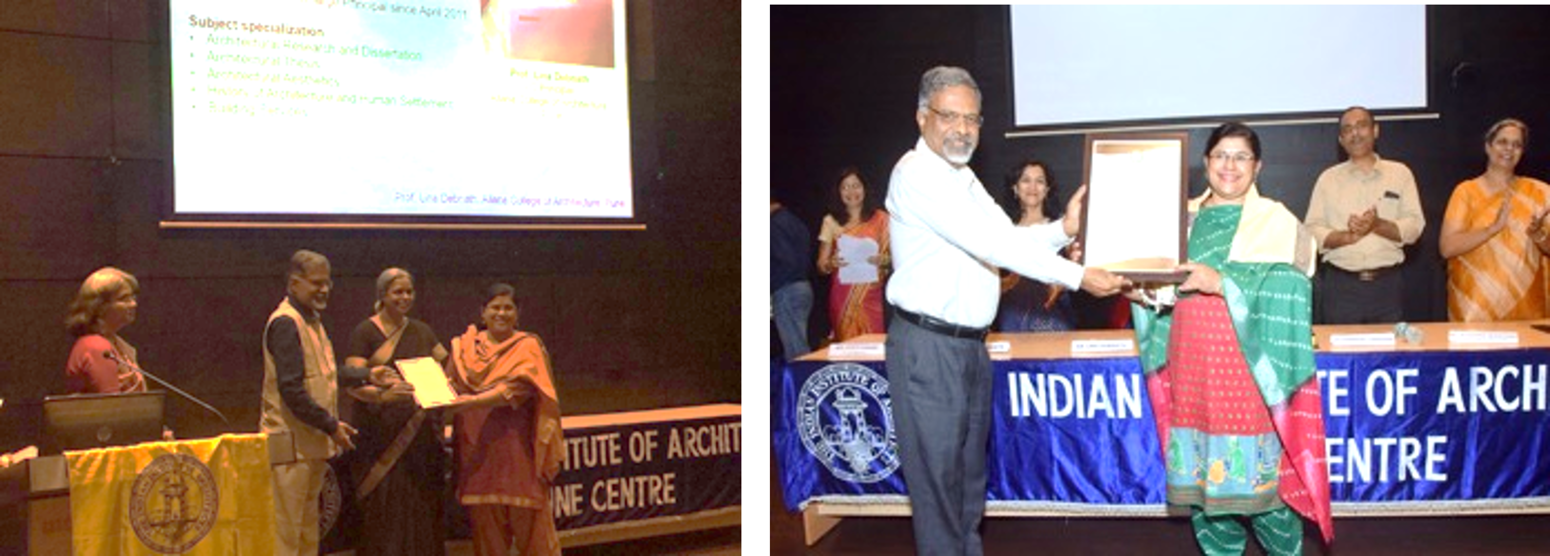 Principal Prof. Lina Debnath felicitated for her immense contribution to the cause of Architectural Education, by The Indian Institute of Architects, Pune Chapter, at the hands of Ar. Prakash Deshmukh.