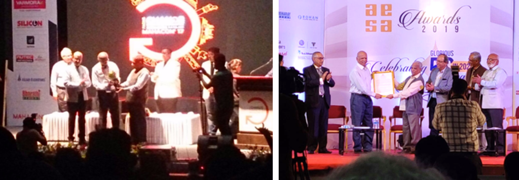 Prof. R.T. Ghogale awarded Lifetime Achievement Award by AESA (Architects, Engineers and Surveyors Association) at the hands of eminent Marathi Actor and Civil Engineer, Er. Ravindra Mankani.